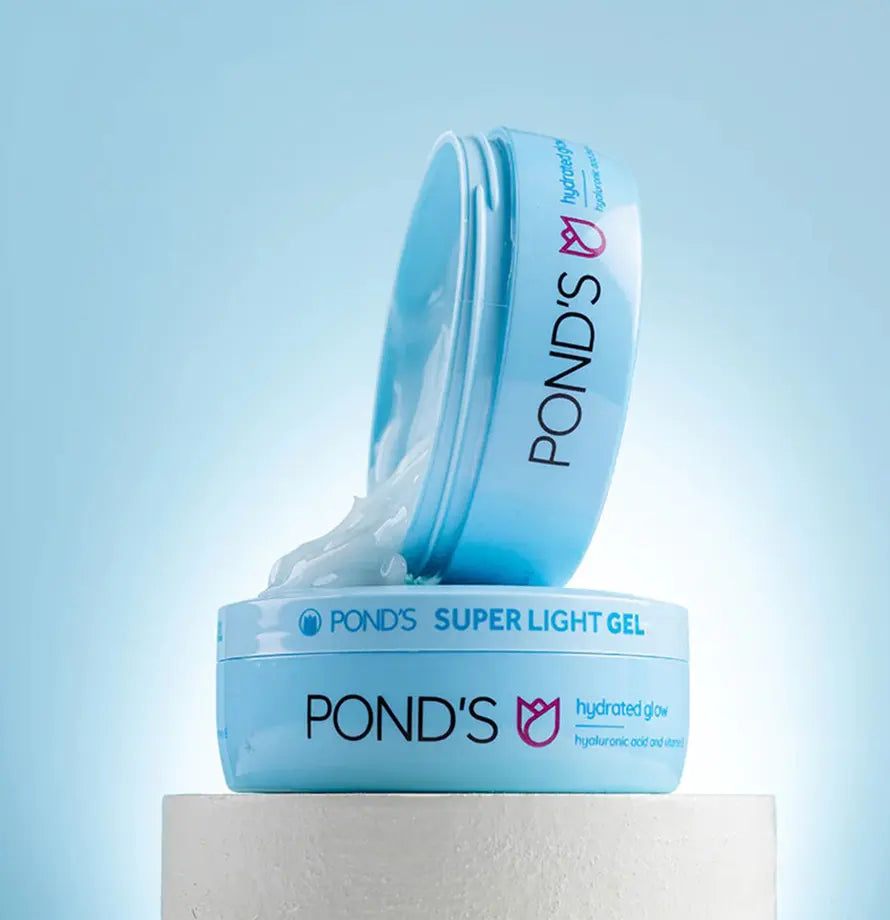 PONDS Super Light Gel Moisturizer offers 48HR hydration with Hyaluronic Acid and Vitamin E. Lightweight, oil-free formula for soft, smooth, and refreshed skin.
